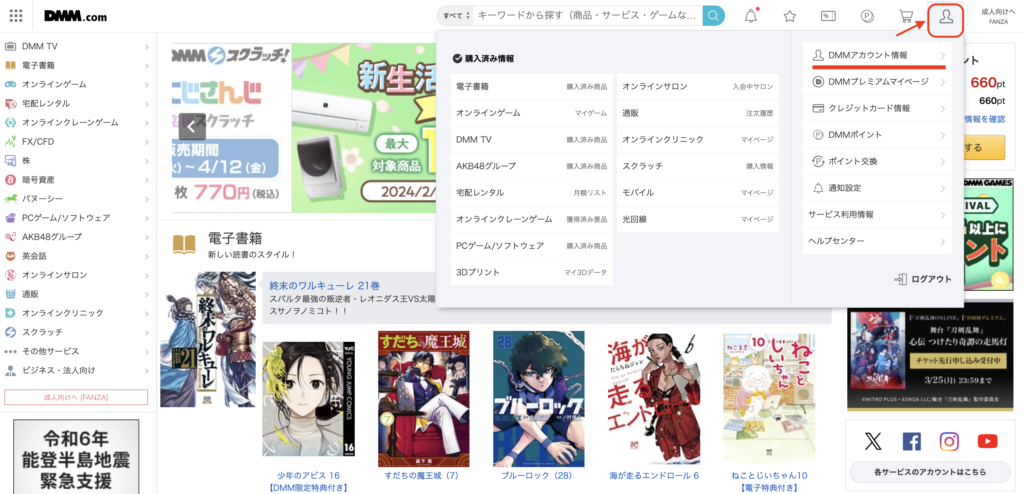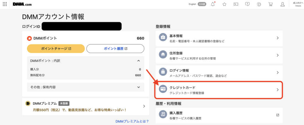 自身のカードが古い情報かどうか、まずはDMMアカウントにログインし、支払い情報を更新する必要があります。