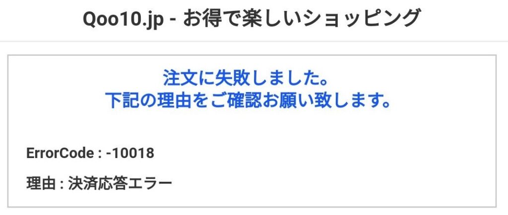 これも安価で購入できるQoo10だからこその原因なのですが、短時間での複数決済は落とし穴となっています。