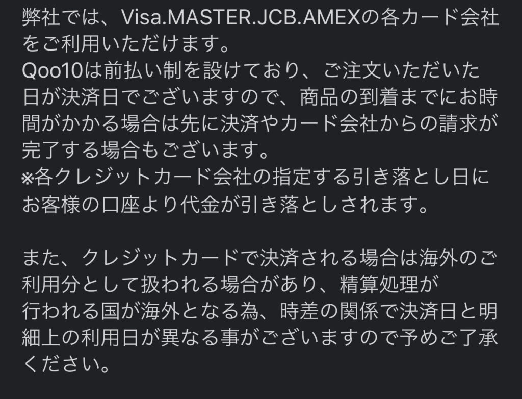 クレジットカード自体のエラー解決とは少々違いますが、これらの後払いサービスは決済時のエラーが少なく、またクレジットカード情報を直接Qoo10側に登録したくないユーザーにも最適です。