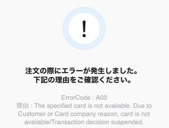欲しい商品を見つけ、クレジットカード決済を行いましたが、下記のようなエラーメッセージが出てしまい、何度やっても購入することができませんでした。