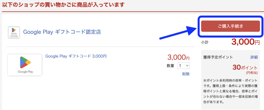 ひとまず、楽天Googleplayギフト店の購入時詳細ページを確認して、自身のエラーが購入金額制限によるものなのか、確認しましょう。